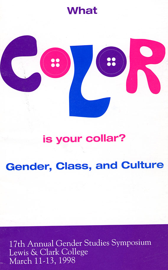 The 1998 Gender Studies Symposium Art Show focused on the relationship between class and art, featuring works which specifically address class as subject, as well as those which consider economics more obliquely. Naturally, many of these art projects spoke to class through the microphone of gender. Works came from many corners of our community: Lewis & Clark students, staff, and faculty, and artists from the greater Portland area and beyond.