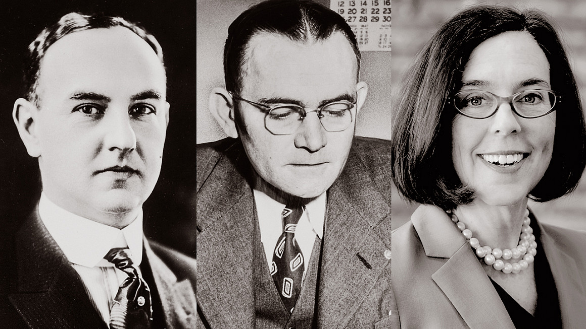 For one, their governor tenures were separated by more than 80 years. Oregon regimes have been as tight as four men in just four years (1909 to 1913) or as wide as just one woman and two men in the quarter century preceding Brown (1991 to 2015). Wide spread in time puts politics into differing socioeconomic-scientific milieu. Contrast a 20th term of governance in an economic depression era; a 24th term in a postbellum recovery era; and a 38th term in a 21st century world swirling in movements, cybernetics, ecology, and global awareness.