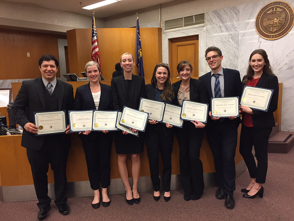 Lewis & Clark students scored high in the recent inter-school Mock Trial/Moot Court competition. This is the culmination of the Mock Trial/Moot Court course, an on-your-feet class where students hone trial skills through demonstration and practice. The course is taught by former prosecutor Simon Whang and criminal defense attorney Ed Kroll, and features lectures by trial consultants, respected practitioners, and judges.