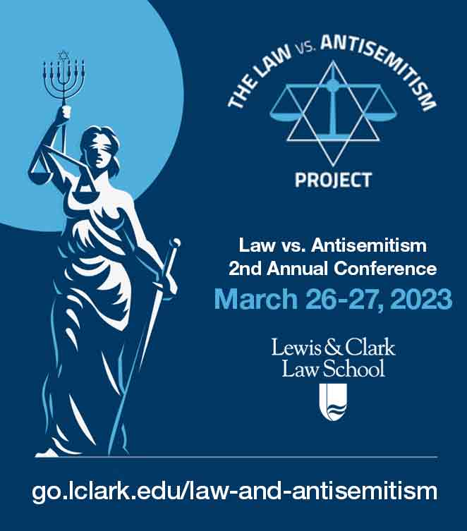 Legal scholars and experts will discuss how law has been used both to perpetrate and to combat antisemitism, historically and today, at the 2nd Annual Law vs. Antisemitism Conference, March 26 - 27, 2023 at Lewis & Clark Law School in Portland Oregon. Intended for students, members of the legal community, and interested members of the public, the interdisciplinary conference is being hosted by the law school, Lewis & Clark Law Review, and the Law vs. Antisemitism Project. The Jewish Federation of Greater Portland is an event sponsor.