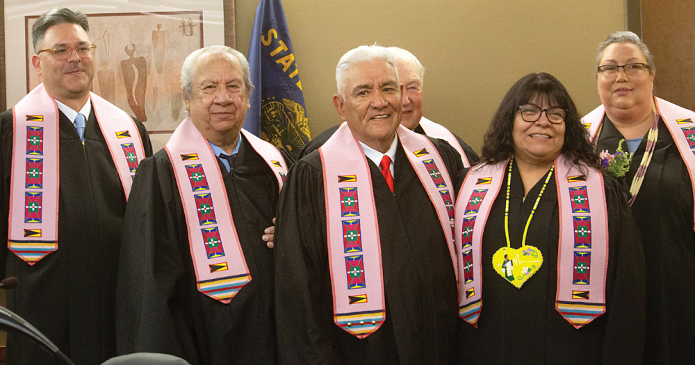 Matthew Johnson JD ’05, pictured to the left in the above photo, was one of three associate judges of the Confederated Tribes of the Umatilla Indian Reservation (CTUIR) to receive a ceremonial oath of office and presentation of robes in April 2023. The Tribal Court has sole criminal jurisdiction over Indian people on the Umatilla Indian Reservation and criminal jurisdiction over non-Indians who have been charged with domestic violence offenses under the Violence Against Women Act. It also has concurrent jurisdiction with Oregon for civil issues within the reservation. A licensed attorney, Johnson has been the Tribal Court director/judicial assistant since 2022.