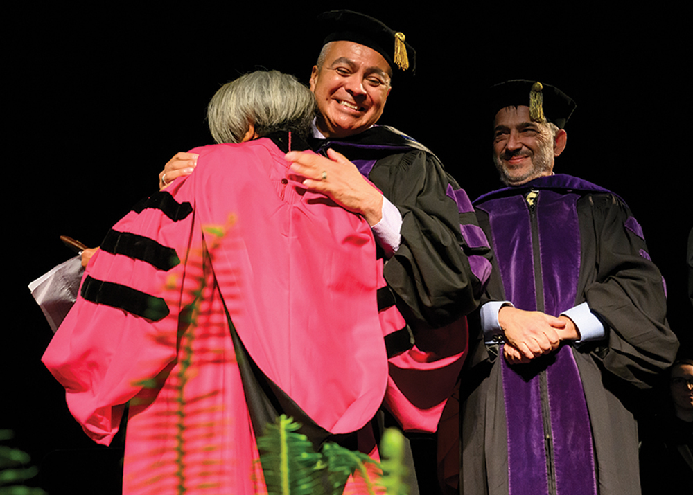 Speaking before 250 graduates and their families and friends, Román Hernández shared the challenging pathway that led him to be the distinguished attorney and celebrated leader of his community today.