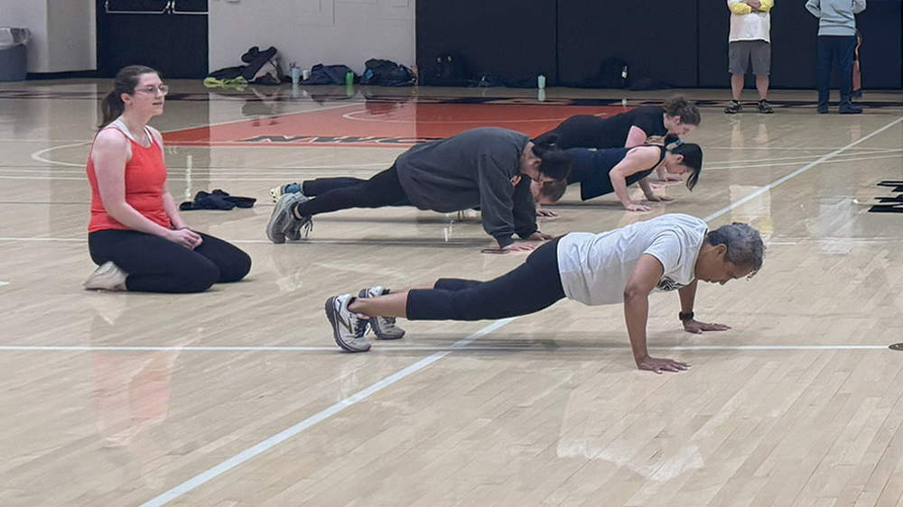 On March 14, 2025, Lewis & Clark Law’s faculty, staff, alumni, and students gathered at Griswold Stadium Track & Pamplin Gym for the “PILP 2025 Beat Jim and Janet Challenge.” Professors Jim Oleske and Janet Steverson went head-to-head with participants in five events: a 3,200-meter run/walk, push-ups, planks, chin-ups, and free throws.