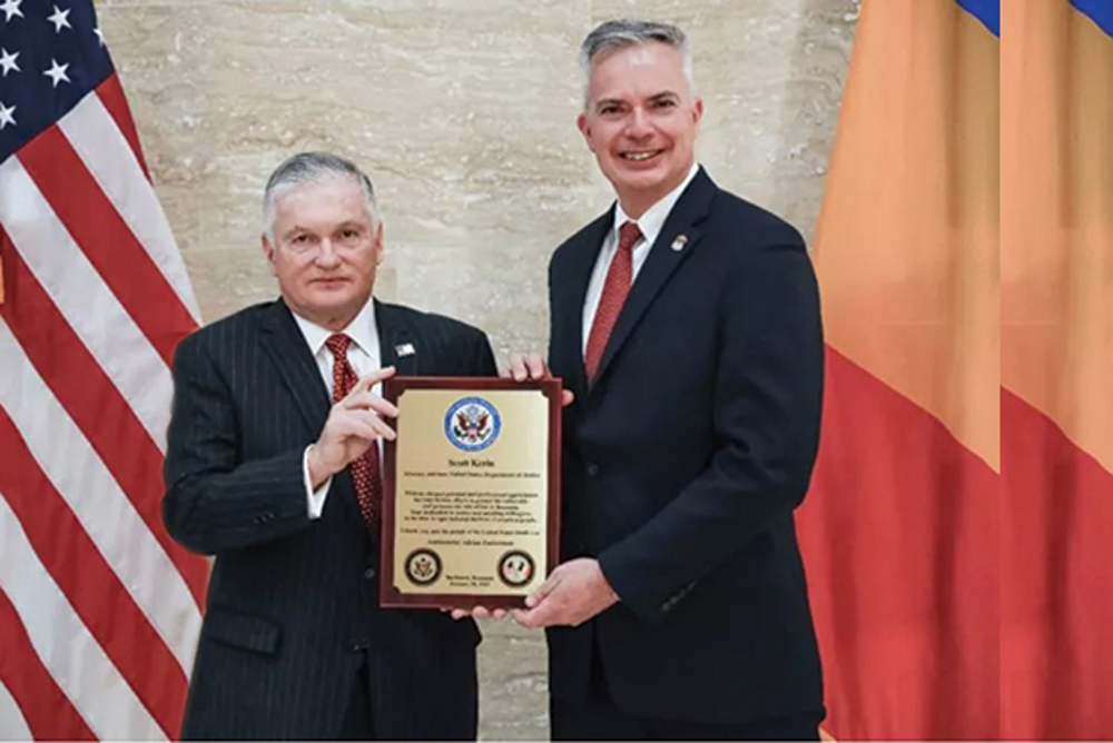 And in January 2021, the Ambassador honored Kerin again with the U.S. Embassy’s Achievement Award for his work in helping broker historic agreements between the Romanian government, the City of Bucharest, and the Romanian Orthodox Church to cooperate in combating human trafficking.