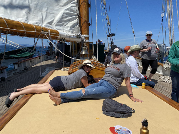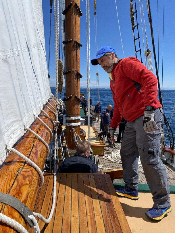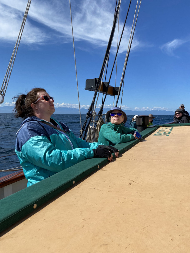 Guests are encouraged to join the crew, helping to hoist the 7000 feet of sails. When not assisting with sailing duties, you may be in the chart room, learning about navigation or actually at the helm of this fine vessel. You might grab the binoculars to see a passing orca or actually help with chores and swab the deck. While enjoying the ship’s excellent meals you can share stories from your time at Lewis & Clark or compare notes from the day’s adventures.